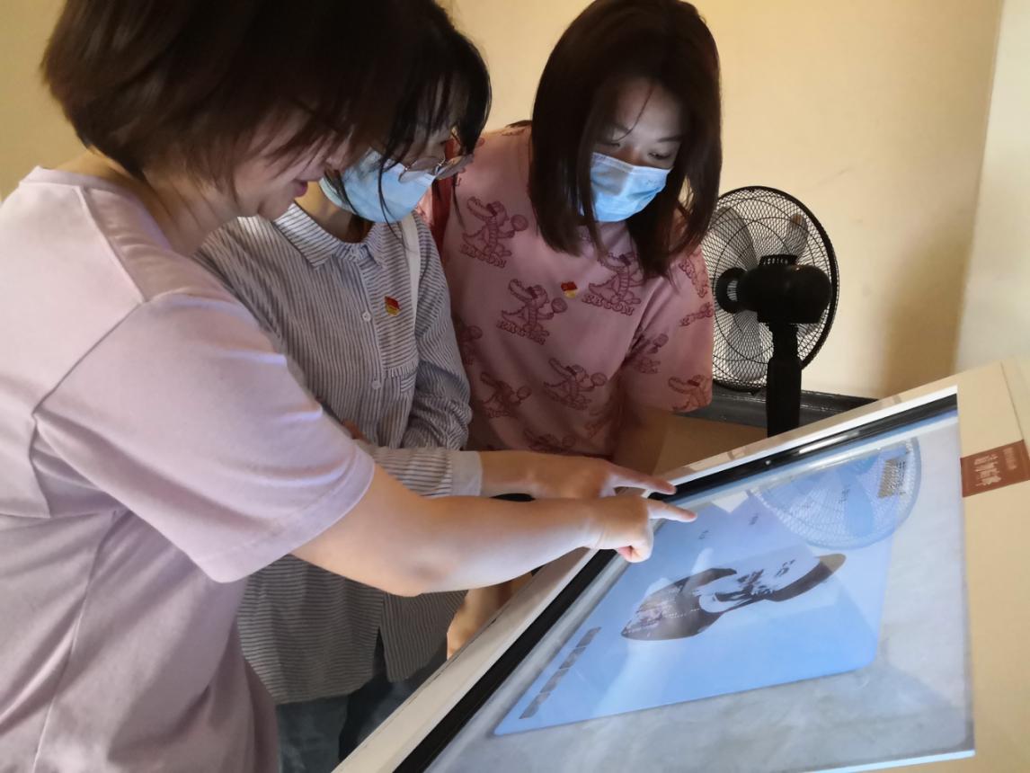 图为支部成员利用馆内设备学习