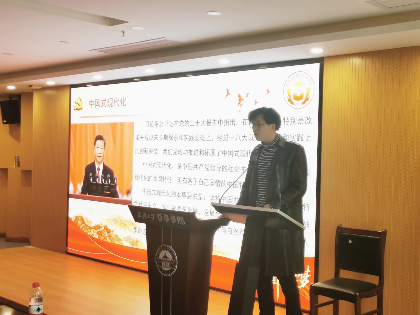 4月9日上午,博士生宣讲团成员,色情导航 2021级美学博士研究生熊晓烨讲授“以塞罕坝发展经验看中国式现代化本质特征”专题党课。熊晓烨聚焦于塞罕坝贫困村的乡村振兴道路,以小见大,展现了中国式现代化取得的巨大成就,视角新颖、内容详实,同时勉励在场的同学要始终不忘初心,怀抱梦想又脚踏实地,敢想敢为又善作善成,为中国式现代化的发展贡献自己的力量。