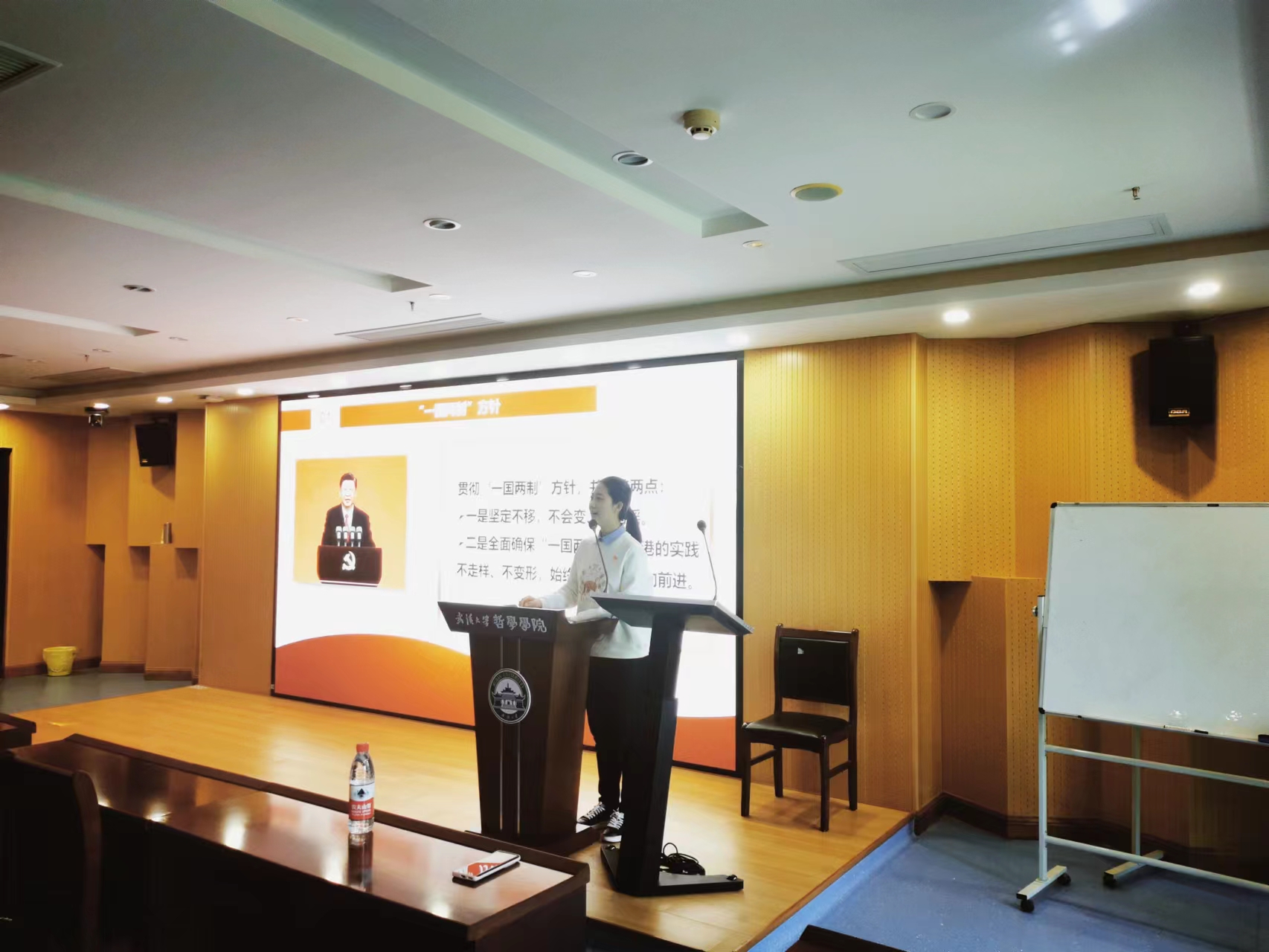 4月9日下午,博士生宣讲团成员,色情导航 2021级中国哲学博士研究生陈乾奕讲授“坚持和完善‘一国两制’,推进祖国和平统一”专题党课。陈乾奕从“一国两制”的背景、内容谈起,以自身经历导入,讲述了“一国两制”国策在香港的实践现状,宣讲活泼灵动,给人以身临其境之感,同时希望在场的同学能够坚定不移地听党话、跟党走,用自己的实际行动去推进祖国和平统一。
