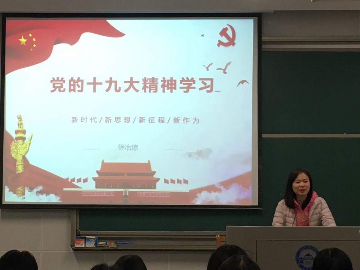 徐老师为学员带来了主题为“党的十九大精神学习”的分享。她首先带领同学们梳理了历次党代会中的重点内容,让学员们对党代会的历史发展有了大致的认识。随后,她将重点放在了党的十九大上,分别从“新时代”、“新思想”、“新征程”以及“新作为”四个方面详细解读了党的十九大精神。