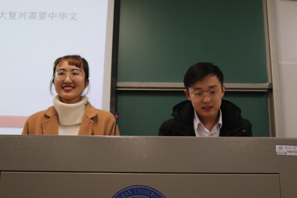 文学院第三组则展示了关于党的十九大报告的相关讨论,从文化自信、教育民生、“一国两制”、全面建成小康社会、生态文明等多个角度向我们深度阐述和分析了党的十九大报告中对中国特色社会主义建设工作的指导,在场同学都表示会坚定的追随党的脚步,为中华民族伟大复兴贡献自己的力量。