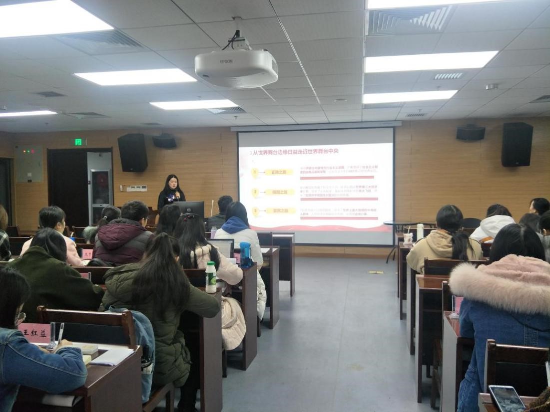 张瑜博士就“为什么学”、“学什么”、“怎么学”、“如何学以致用”四个方面展开了学习习近平新时代中国特色社会主义思想的主题讲解。通过对习近平新时代中国特色社会主义思想的解读,张瑜博士总结出了新时代产生的“新成就”、“新矛盾”、“新征程”、“新方略”,在此基础上引入习近平总书记“培养民族复兴大任的时代新人”的要求。张瑜博士以生动的言语和简明的幻灯片,阐述了时代新人“新”在“肩负新的历史使命”、“身处新的时代境遇”、“承载新的成长期待”,并结合理论与实践阐述了习近平总书记对当代青年“有理想、有本领、有担当”的期望。