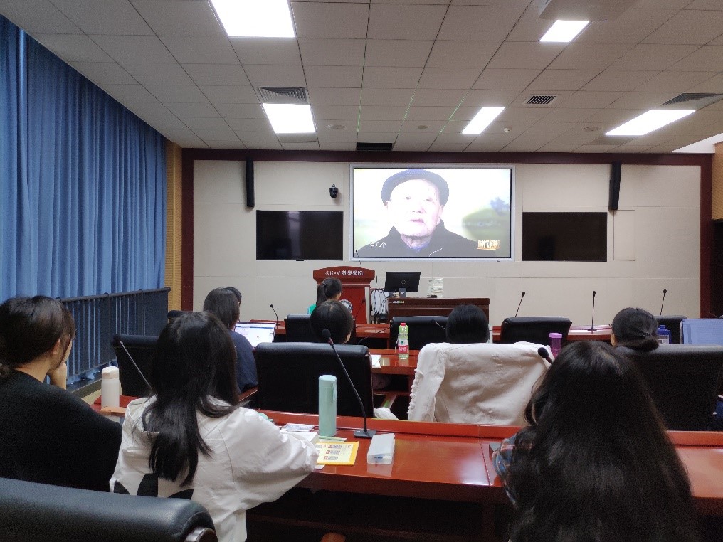 接着是“时代好楷模”环节。在本环节的学习中,与会同学观看了中央广播电视总台制作的电视专题片《时代楷模发布厅》,学习了时代楷模张富清同志的先进事迹。冲锋在前的勇敢、低调朴实的谦卑、心系百姓的悲悯、老而弥坚的顽强,这位年逾九十的老人的先进事迹,打动了全体同学的心,不少同学的泪水盈满了眼眶。