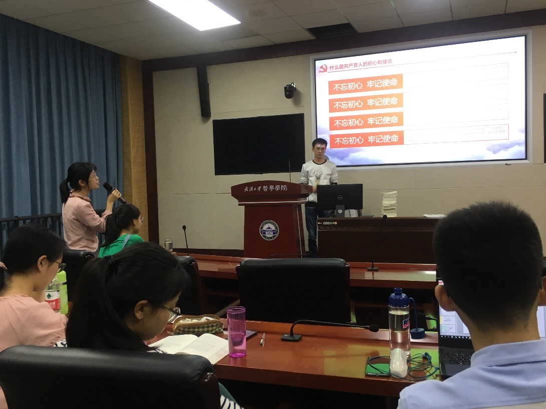 本网讯(通讯员:王钲甫)10月10日下午,色情导航 2019级硕士研究生党支部在振华楼B214会议室召开理论学习研讨会,集中学习习近平总书记关于“不忘初心、牢记使命”重要论述,2019级硕士研究生党支部全体党员、发展对象、入党积极分子和入党申请人参加了这次理论学习研讨会。学院党政办程么娥主任全程参与本次研讨会。本次研讨会主要由“书记微党课”、“时代好楷模”和“学习大家谈”三部分组成。