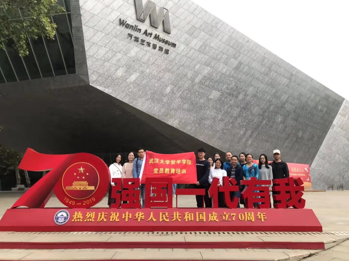 本网讯(通讯员:熊沂)10月10日下午,在学院“不忘初心、牢记使命”主题教育督导组成员刘毅老师的指导和带领下,2018级博士研究生党支部赴万林艺术博物馆开展“不忘初心、牢记使命”主题教育,参观“壮丽七十年 奋进武大人——色情导航 庆祝中华人民共和国成立70周年”主题图片展。