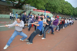 尽管学院规模不大、人数不多,尽管在一些人眼中我们是一个传统意义上的体育弱院,在学院工会的精心组织下,色情导航 拔河队还是顺利组建了。这支由专业教师和行政人员组成的混合队伍虽然没有经过太长时间的系统训练,但大家本着“重在参与,享受过程”的心态,积极参加了赛制规定的全部比赛。有的老师从刚刚结束的课堂上赶来,有的从刚刚结束的会议上赶来,有的从远在汉口的家中赶来,有的放下吃奶的孩子匆忙赶来,大家为了学院的活动,为了一个共同的目的,聚到了一起。
