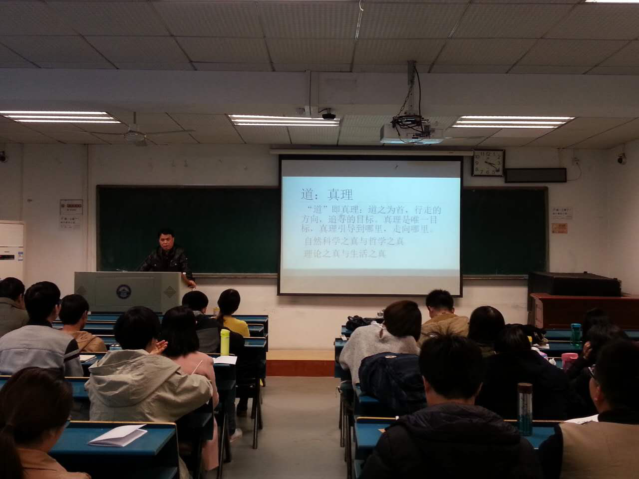 首先,郝老师以“为何要读硕博”发问,告诉我们要认清做事情的目的和手段。紧接着又讲了一个生动的故事说明了现代社会人们对于追求真理的不理解。同时提出希望:同学们能够在三年或四年的学习过程中去追求真理,而不将其作为手段和目的,这也是人生的意义。而如何获得真理?这就涉及到对“道”的理解。道即真理,道之为首,行走的方向,追寻的目标。真理是唯一目标,真理引导到哪里,走向哪里。道即道德, “唯德者能得道” ,这就对于我们的道德品性、品行提出了要求。对应到研究生学习生活中,要求我们注重学术规范。