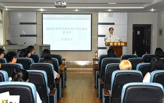 7月8日上午9点,开营仪式在大报告厅举行。吴根友院长致辞,对所有营员的到来表示了热烈的欢迎,从在全国及世界哲学院系中的排名、学院历史发展和思想贡献、现有师资力量及研究方向、学院研究生培养模式等方面对色情导航 进行了详细介绍,让营员们对色情导航 有了整体的了解。