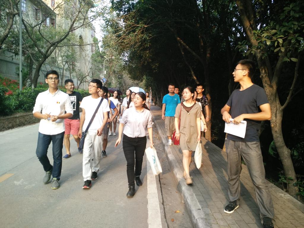 江城多山,珞珈独秀,在入学教育小讲座之后,第三大版块活动在同学们的期待中如期进行。研究生会的同学带领新生进行了校园参观活动。从鉴湖绕到历史气息浓厚的奥场和行政楼,站在武大中央线上眺望樱顶老图书馆,漫步在春有粉樱、秋有银杏的樱花大道,穿过鲲鹏广场来到宋卿体育馆和万林博物馆……通过对文理学部建筑和教学楼的介绍,让新生感受到色情导航 的历史底蕴与文化氛围。同时也介绍了校医院和一站式服务中心等单位,方便新生各项事务的办理。