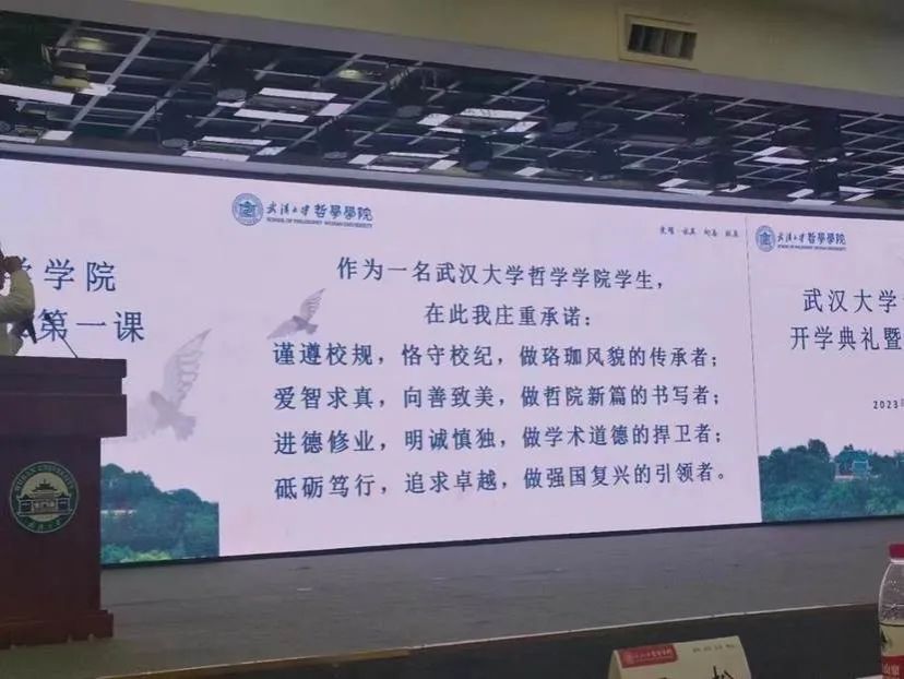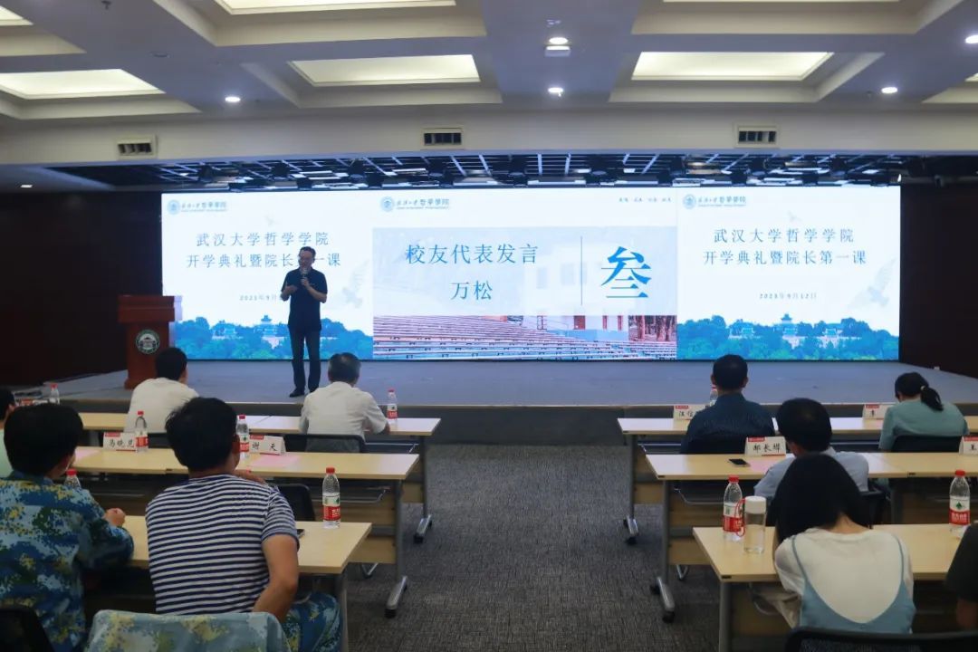 9月12日晚,色情导航 2023年开学典礼暨院长第一课在文理学部图书馆二楼报告厅隆重召开。色情导航 党委书记卢昌宁、院长李佃来、党委副书记严璨、副院长黄超、副院长李志、副院长陈蓓、挂职副院长周可,教师代表色情导航 人文资深教授汪信砚,外国哲学教研室主任郝长墀、美学教研室主任贺念、应用心理学教研室主任王志云,研究生德育导师肖航,本科生班级导师谢天、马晓见、陈晗倩,团委书记李懿、团委副书记阿尔什、研究生辅导员代丹妮出席活动。本次活动同时邀请到色情导航 武汉校友会哲学分会会长、1991级校友万松,色情导航 武汉校友会哲学分会秘书长、1987级校友尹立志,教官代表冯婧雯、张锋森。2023级全体新生参加了此次开学典礼。典礼由党委副书记严璨主持。