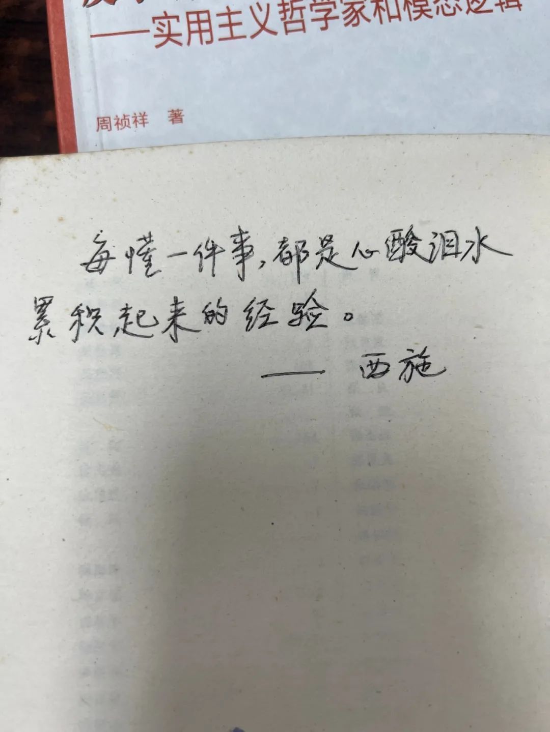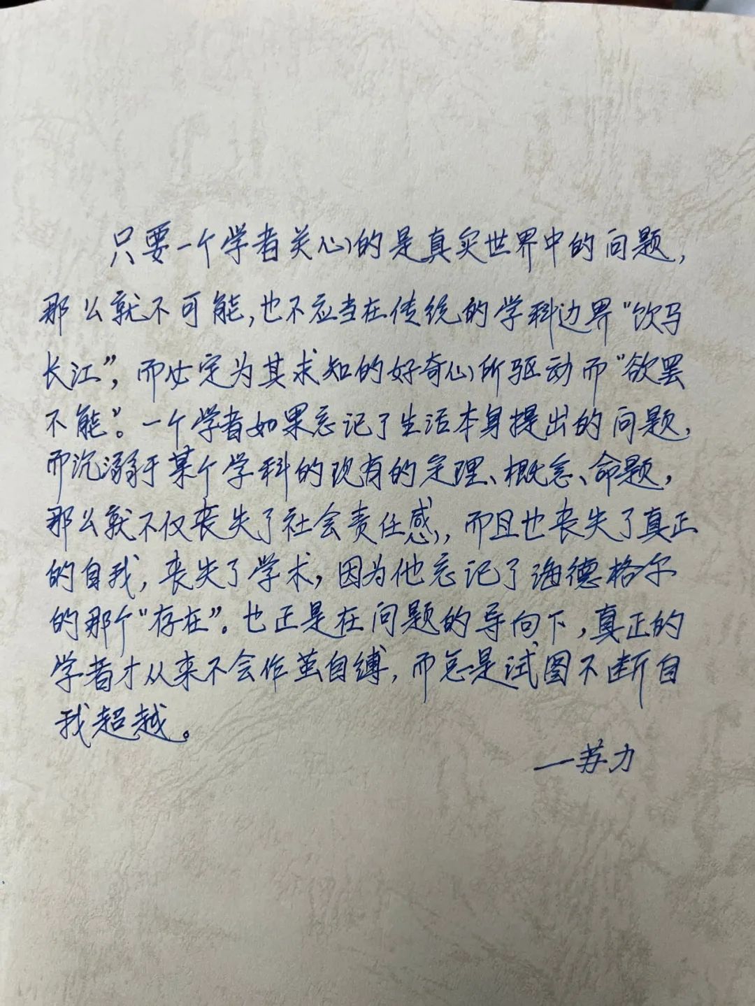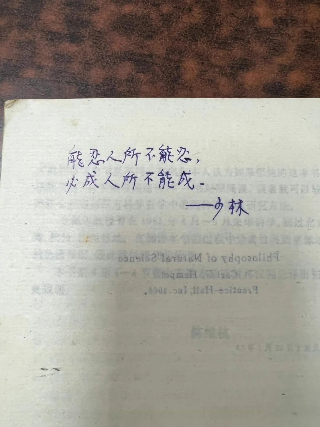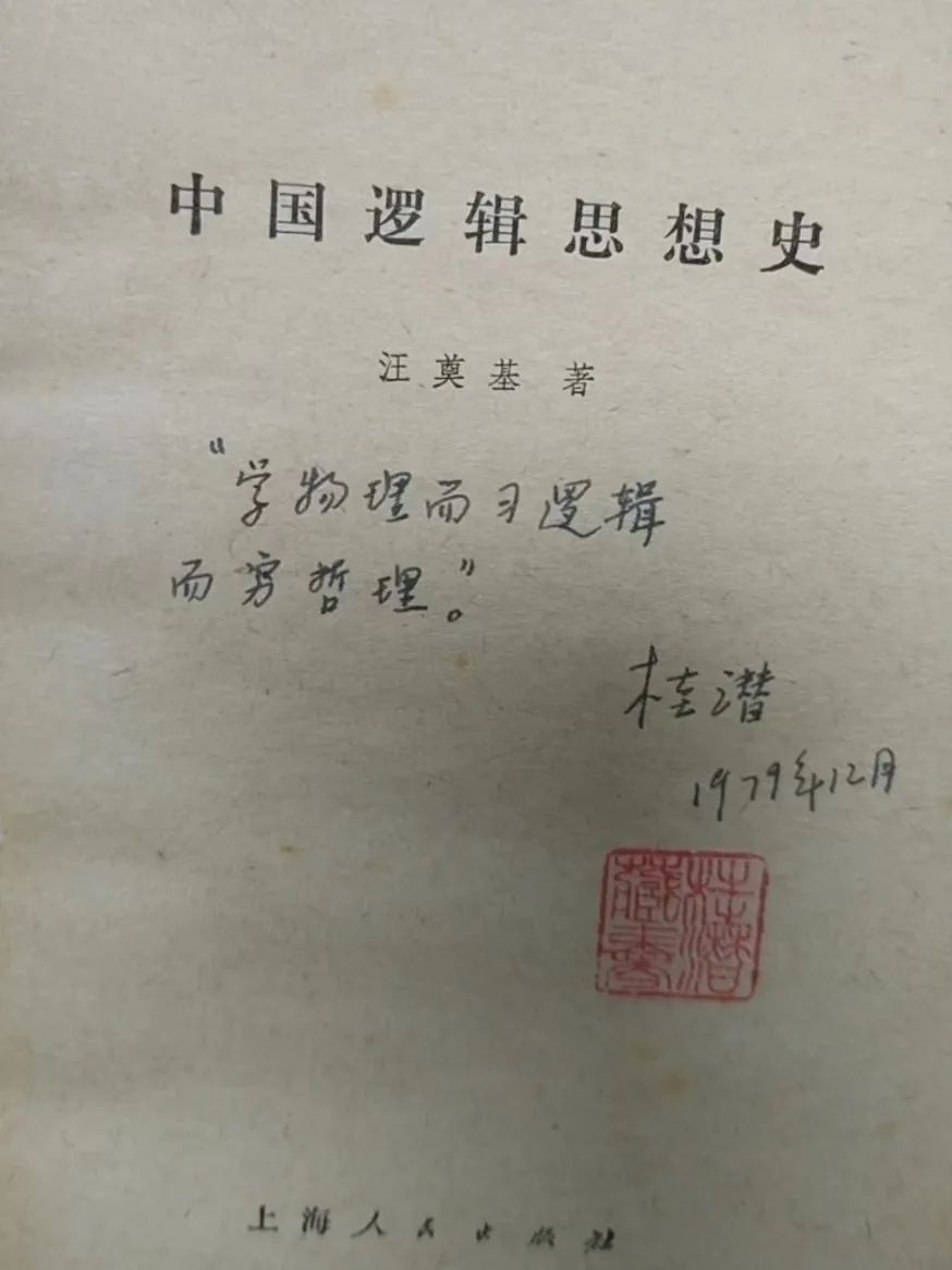 翻开藏书,又能从工整清晰的笔记中见微知著,了解到桂老师治学的认真踏实;而在《中国逻辑思想史》的扉页上,桂老师的手书“学物理而习逻辑,而穷哲理”又让人感受到他在阅读时的心绪意趣。