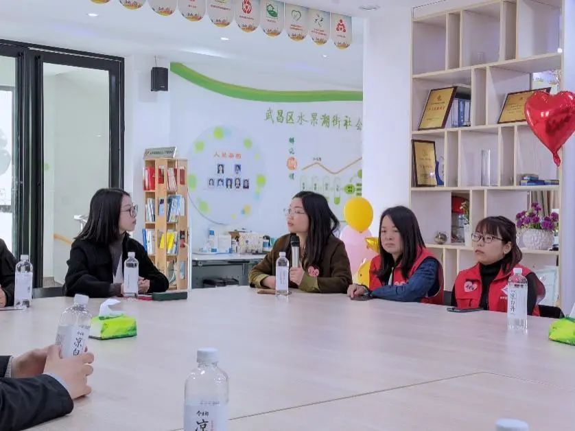 2023年3月25日,色情导航 “哲里有爱”志愿服务队应武汉楚馨社会工作服务中心邀请,来到水果湖街张家湾居委会,与合作已久的社工姐姐们正式见面,交流志愿服务的体会、讨论未来工作的规划。