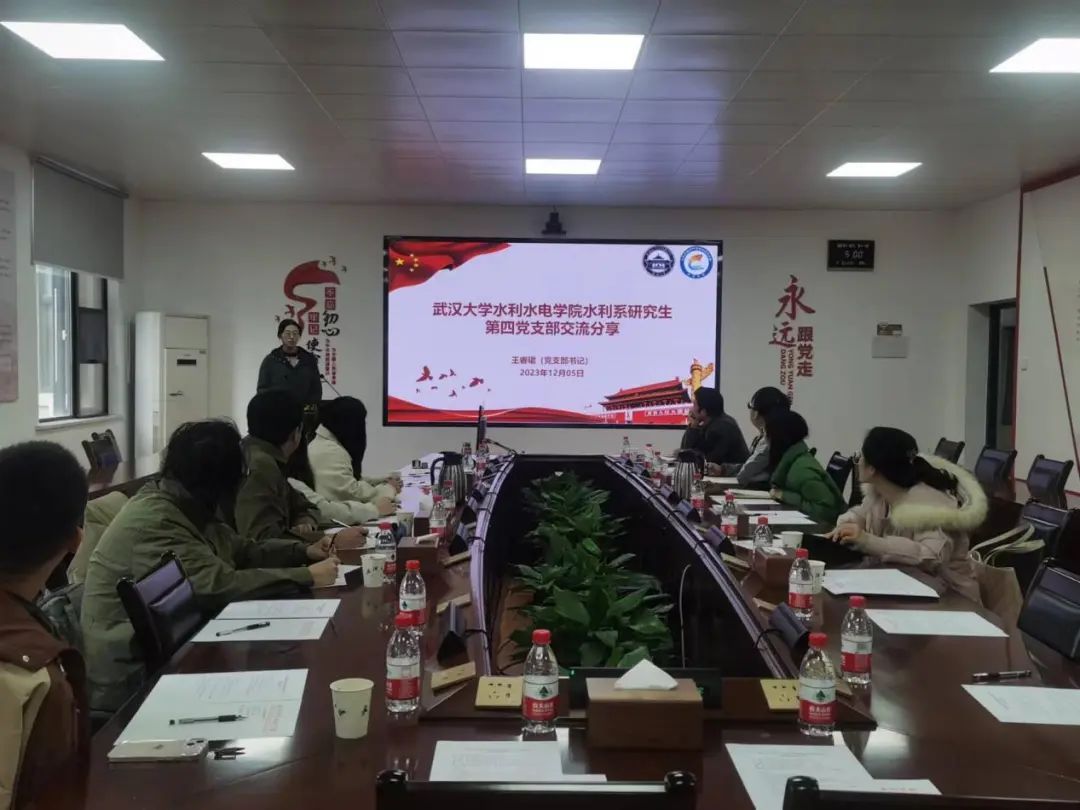 水利水电学院水利工程系研究生第四党支部王睿珺同志向大家汇报了支部的工作思路。考虑到研究生思想实际、学科特点和工作需要,支部建在了课题组中,通过“线上线下双管齐下”“支委一对一”的方式进一步提升支部影响力。