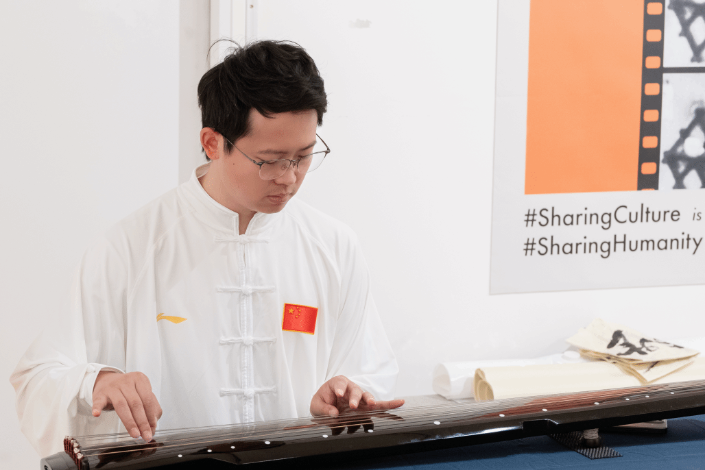 在“中华文化·雅集”的非遗展示环节中,王军先后展演中国传统乐器古琴和中国武术太极拳,动如行云流水,声为黄钟大吕,在场中外友人无不击节叹赏。
