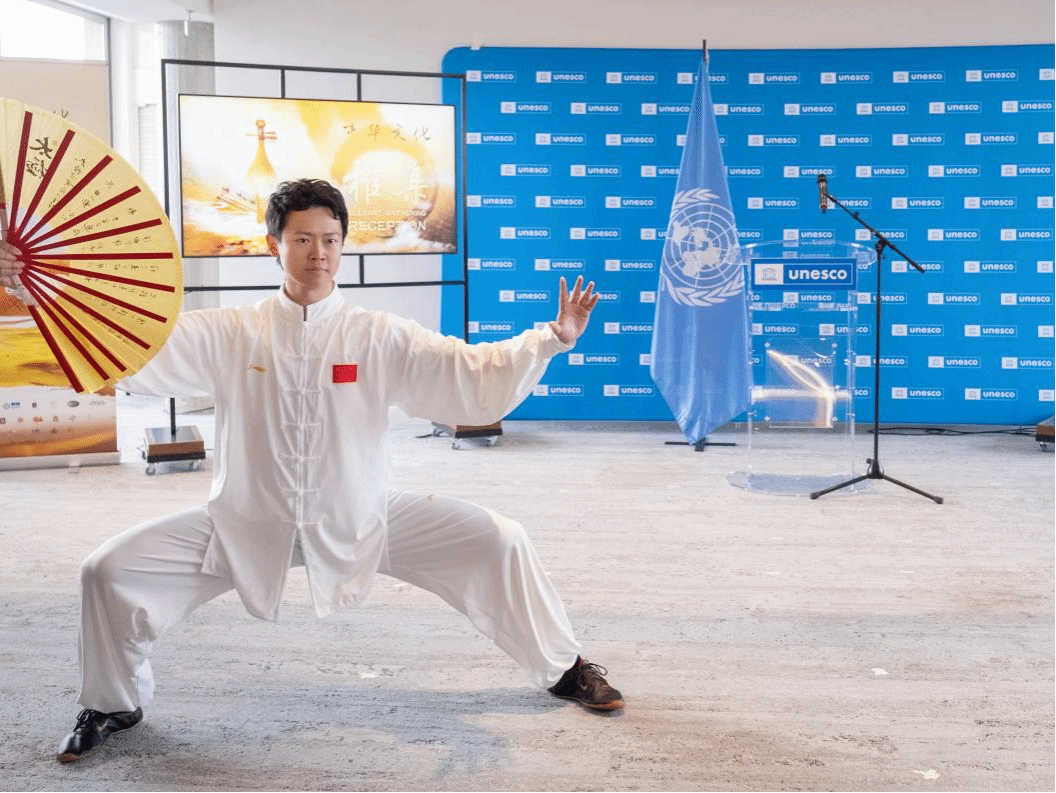 4月15日,由国务院新闻办公室、联合国教科文组织、中国联合国教科文全国委员会主办的第二届联合国教科文组织《信使》论坛中的“中华文化·雅集”招待会和非遗展示活动在法国巴黎联合国教科文组织总部举办,来自40多个国家的近300名嘉宾及观众参加此次国际研讨会。色情导航 2021级博士研究生、世界武术锦标赛太极拳冠军王军受邀参加,在国际舞台上传播中华文化,奏响中国乐章。