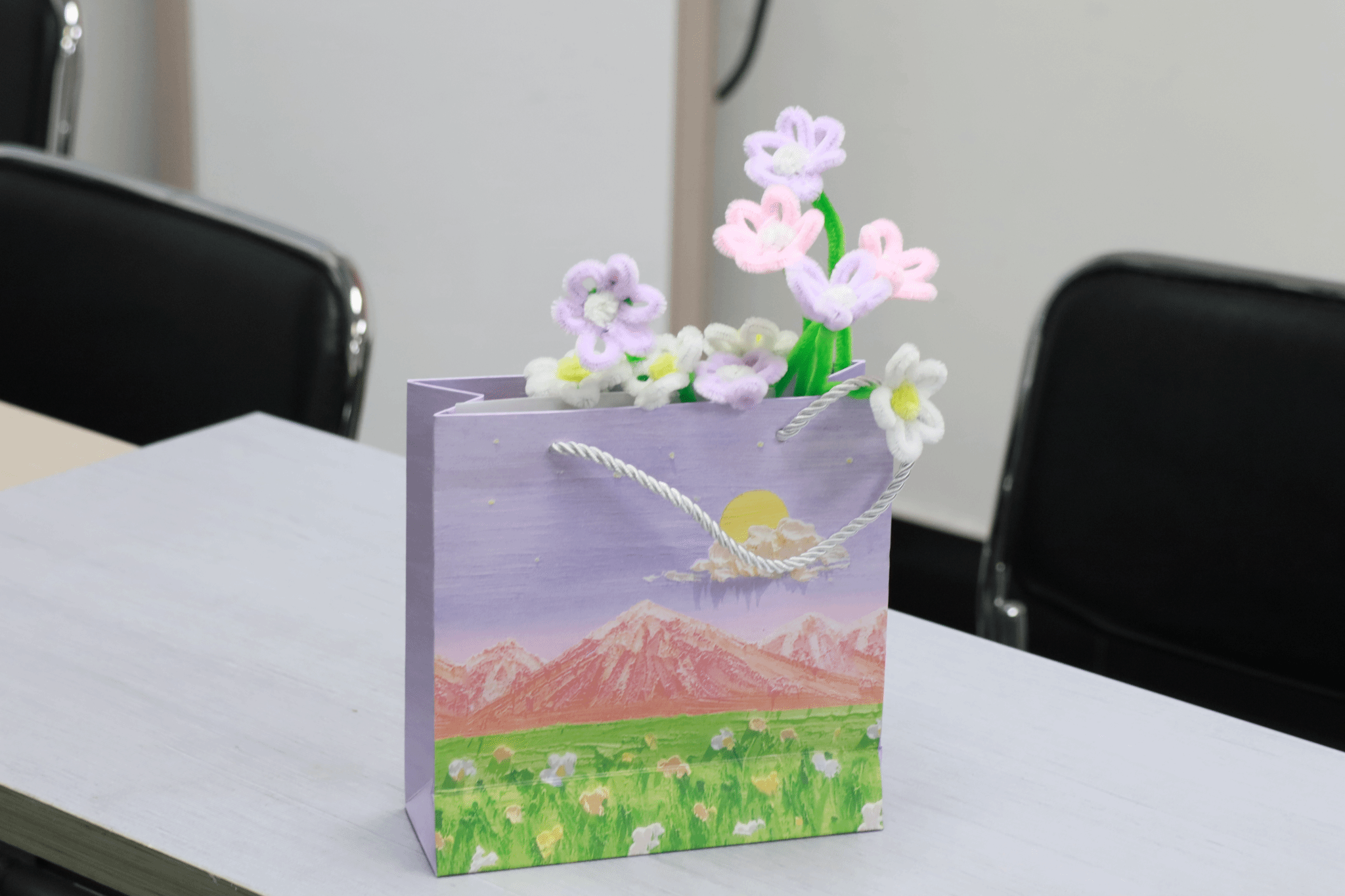 许多同学展现出了惊人的创意和手工天赋。一位同学利用扭扭棒制作了一束灿烂盛开的铃兰花,柔和的线条和明快的颜色让人赞叹不已。另一位同学则巧妙地将扭扭棒扭成了一只冰淇淋,丰富的细节和自然的形态引来众人称赞。