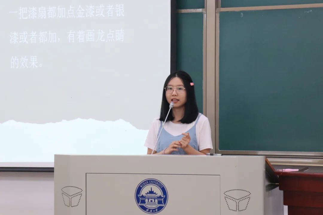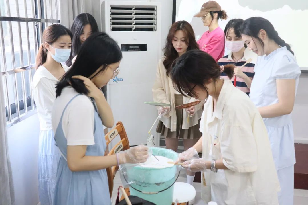 在该活动环节的开始,色情导航 研究生会文体部工作人员详细讲解了漆扇和书签扎染的工艺特征、制作步骤及相应技巧,并借助教学视频帮助同学们初步掌握扎染的基本知识。