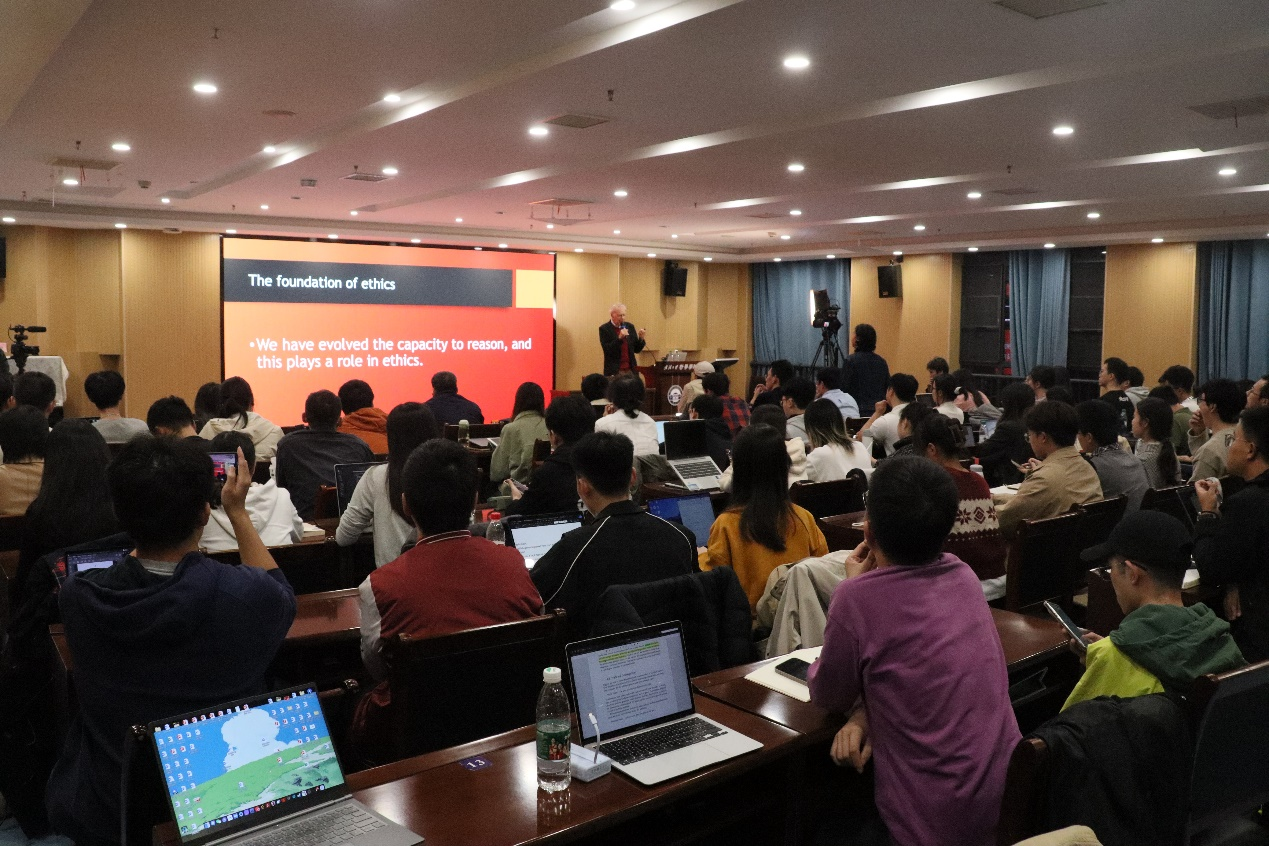 整场讲座在热烈的讨论声中圆满结束。Singer教授的精彩演讲加深了听众对动物权利的理解,激发了世界主义的伦理问题产生思考和反思。本次讲座有望让同学们理解道德伦理的进步发展,指导大家作出更好的道德行为,从而共建美好社会和美丽世界。