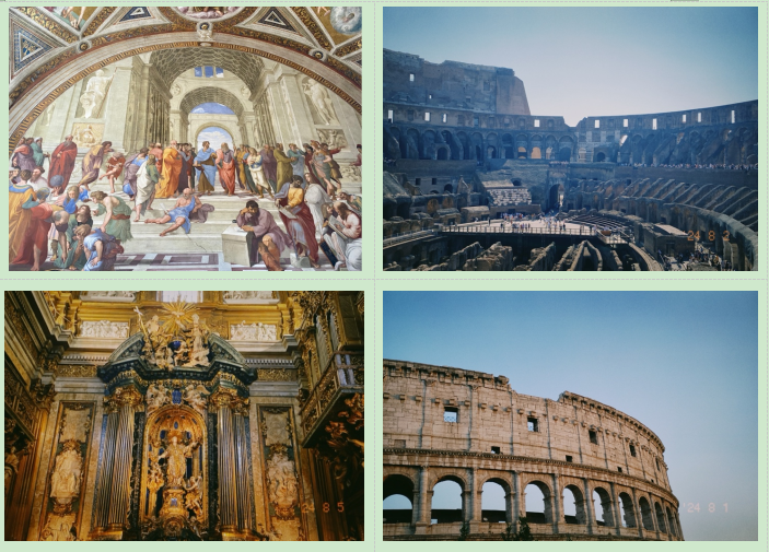 文化体验同样是这次大会的重要组成部分。罗马作为古老文明的发源地,以其深厚的历史积淀和多元文化交融激发了同学们对哲学、宗教与艺术关系的全新思考。在罗马各大学、教堂、博物馆及历史遗迹的参观过程中,同学们感受到罗马充满历史烙印的各色建筑不仅承载着信仰和文明,更体现了数千年以来人类智慧与美学的高度融合。