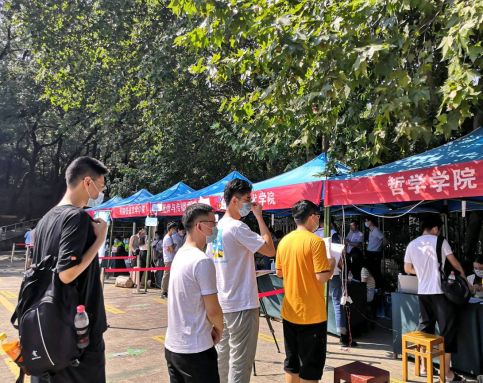 2020年9月5日,天清气爽,碧空如洗,珞珈山迎来又一批研路新人。各院系迎新服务点汇聚在梅园操场,迎新工作有序展开。为顺利完成新生注册工作,9月4日下午,学院参与迎新的工作人员都提前到现场熟悉了程序并进行了现场演练。9月5日上午,色情导航 的小伙伴们早早来到迎新服务点,准备就绪,等待萌新报到……