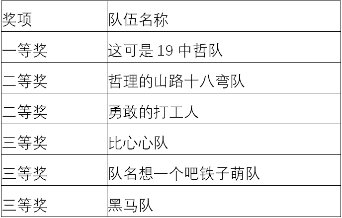 (团体赛获奖名单)