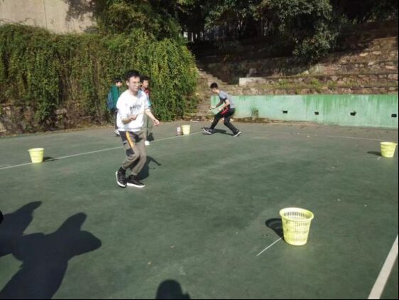 在下午的个人赛中,86名选手一较高下,秀出自我,赛出风采。个人赛包含六个项目:一分钟投篮、一分钟跳绳、踢毽子、企鹅漫步、网球托球跑和看谁夹得快。参赛师生以高涨的热情参与到趣味运动中,整个比赛笑声不断,欢乐相伴。
