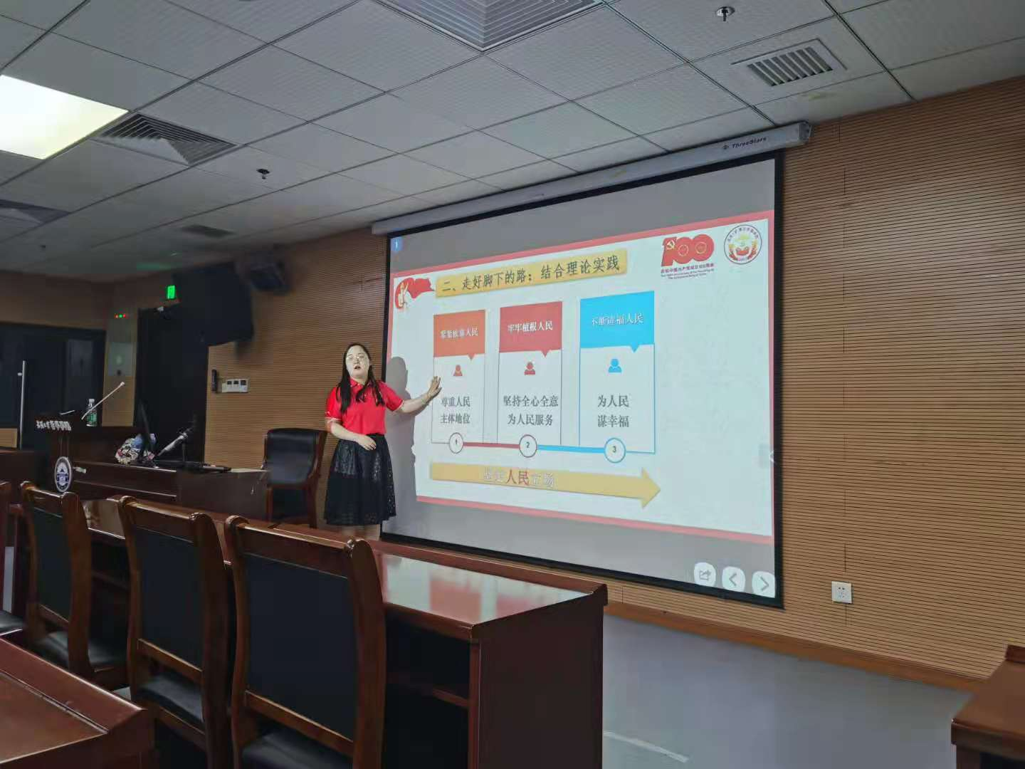 走好脚下的路:结合理论实践。黄丹阳同学从理论与实践相结合的角度,详细论述了坚持以人民为中心的发展思想在中国特色社会主义建设中的具体实践,告诉大家从紧紧依靠人民、牢牢植根人民、不断造福人民的三个层次做到坚定人民立场,践行当代青年党员使命。