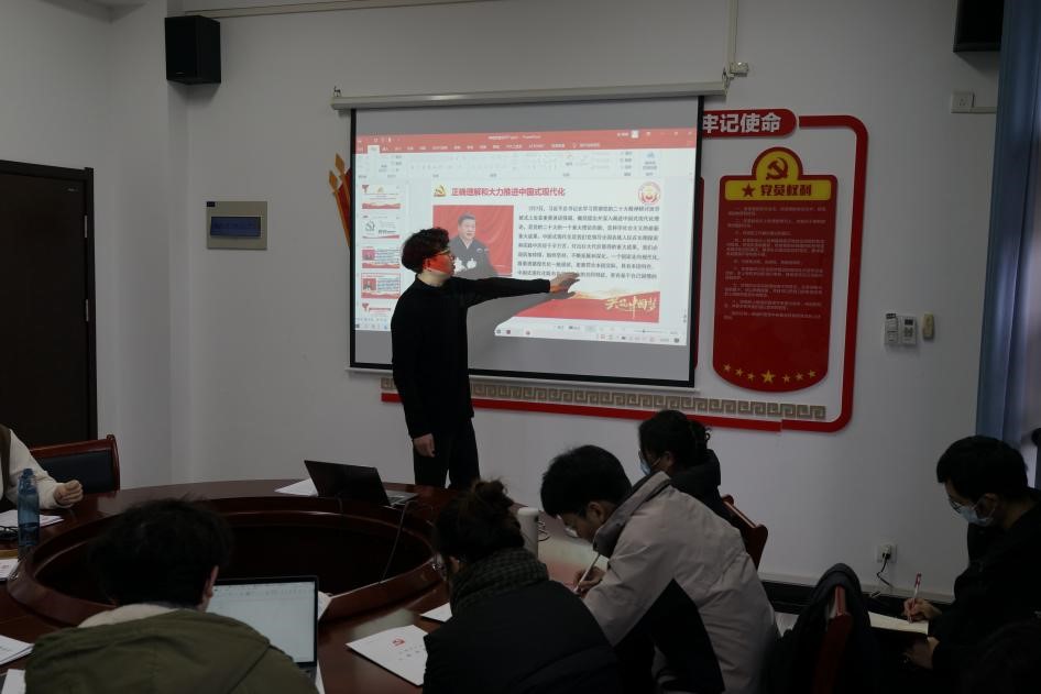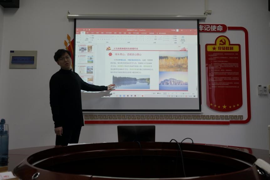 支部书记熊晓烨同志以“学习贯彻习近平总书记在学习贯彻党的二十大精神研讨班开班式上的重要讲话——以塞罕坝发展经验看中国式现代化的中国特色”为题带来了一场理论与实践相结合的党课学习。