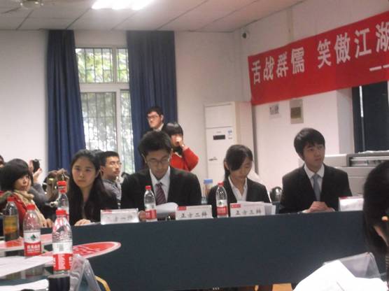 首先由担任正方一辩的任?同学提出观点,她首先引用梅贻琦的那句名言:“大学者,非谓有大楼之谓也,有大师之谓也”,认为提升大学核心竞争力的关键在于优质的教学。她娓娓道来,始终沉着应对。反方一辩提出了相反的观点,接着正方二辩杨舒心同学对反方一辩的观点进行了激烈的反驳,他以一张图表,慷慨激昂地解释了“优质教学”的内涵:为社会培养各种各样的人才,帮助学生培养多种的能力。轮到正方三辩卢艺同学时,她沉着冷静地对反方的观点进行了反驳。在自由辩的环节,正方四辩潘泽同学以敏捷的思维,极快的语速,磅礴的气势赢得了观众的阵阵掌声,也成功地压制住了对手。在最后环节,双方四辩均进行了总结陈词,正方四辩潘泽同学提出:提升大学核心竞争力不能专看科研实力,科研实力必须以优质教学为基础,不能高于优质教学。他以严密的逻辑,自信的风采给观众留下深刻印象,对反方的漏洞再一次还击,为赢得比赛做了最后的努力。