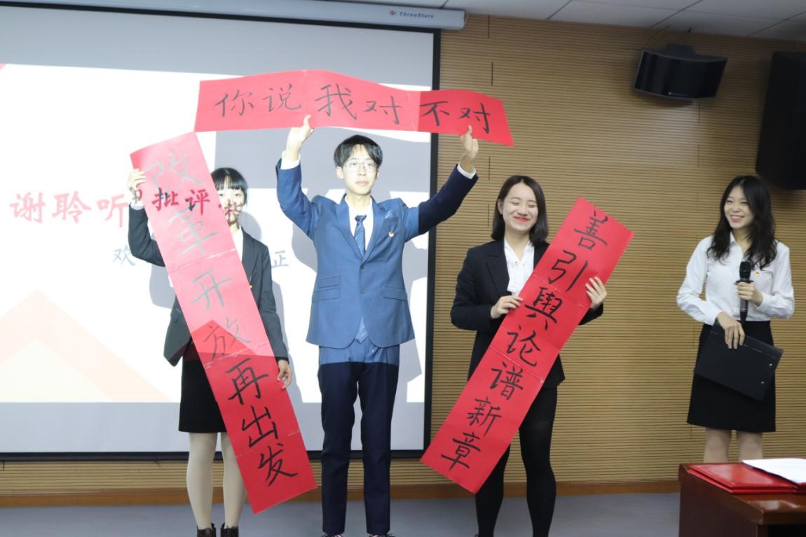 由哲院同学王雪琦、马姗姗、张亚娟、蒋能组成,李懿老师指导的“自由平等公正法治队”,以《药神》事件为背景,寻找情与法的调和,引领社会治理中的人民导向,给大家留下深刻印象。由刘斯羽、孙奕、李锶忱、易海娇组成的“能够行使紧急立法权队”将年轻人的饭圈搬上讲台,深谈改革开放与娱乐圈造假现象的本质。“比完就去吃包子队”就现实网络问政问题展开深入剖析,以无锡市和张家口市为例,为我国政务网站和政务公开建设雕梁画栋。