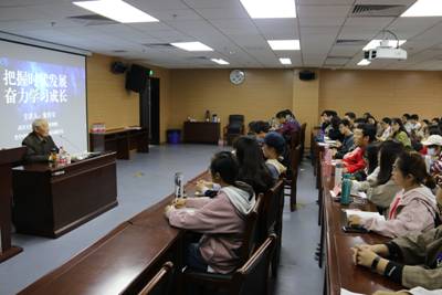 朱老师用生动简洁的语言,告诉我们时代的发展与每个人息息相关,我们应该始终高举中国特色社会主义伟大旗帜,做有信念、有梦想、有奋斗、有奉献的年轻人,才能度过有意义的人生。他还勉励同学们自觉地利用好大学阶段的时光,勤奋学习。