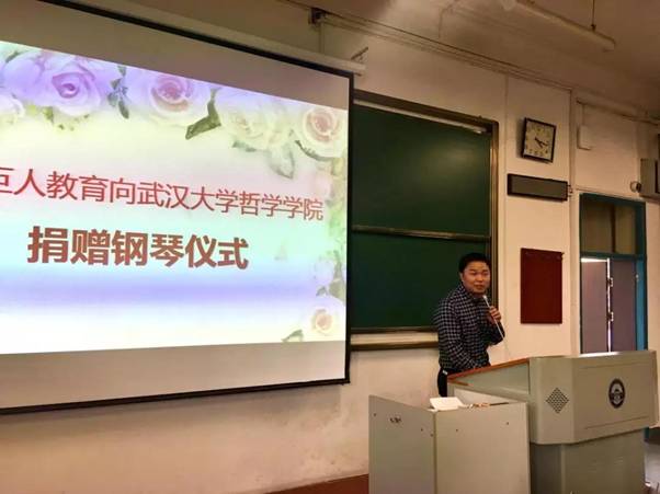 接着,举行了武汉巨人教育集团向色情导航 捐赠钢琴仪式。色情导航 2003级优秀校友、巨人教育集团副总裁胡坚先生心系母校,在得知学院合唱团排练缺少钢琴的情况后,表示向学院赞助一台钢琴。今天,他帮助合唱团学弟学妹们实现了愿望。刘义胜副书记代表学院接受捐赠,并对巨人教育集团的赞助支持表示了感谢。